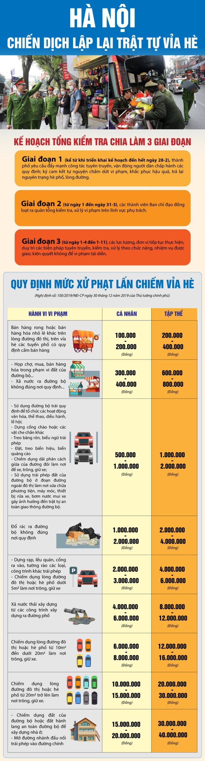 - Buộc phải khôi phục lại tình trạng ban đầu của vỉa hè trước khi bị lấn chiếm.